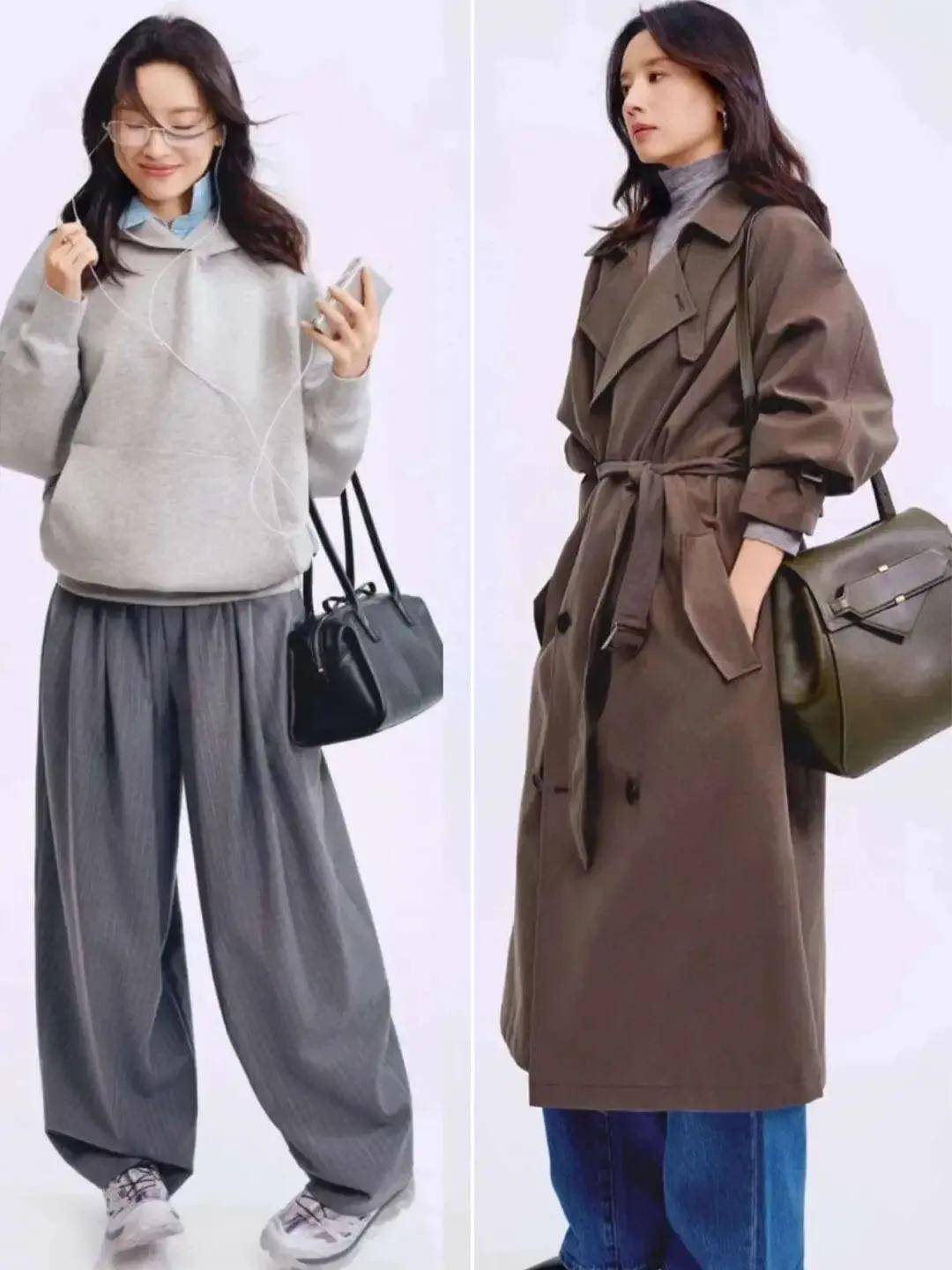 裤装:阔腿+垂感,藏住腿型缺陷:拒绝紧身裤(显腿粗、拘束),选阔腿裤或烟管裤(九分或全长),材质选垂感好的(如西装料、针织),能修饰O型腿、萝卜腿。搭配长款上衣(如大衣、针织衫),形成“上长下长”的纵向延伸,显高又高级。