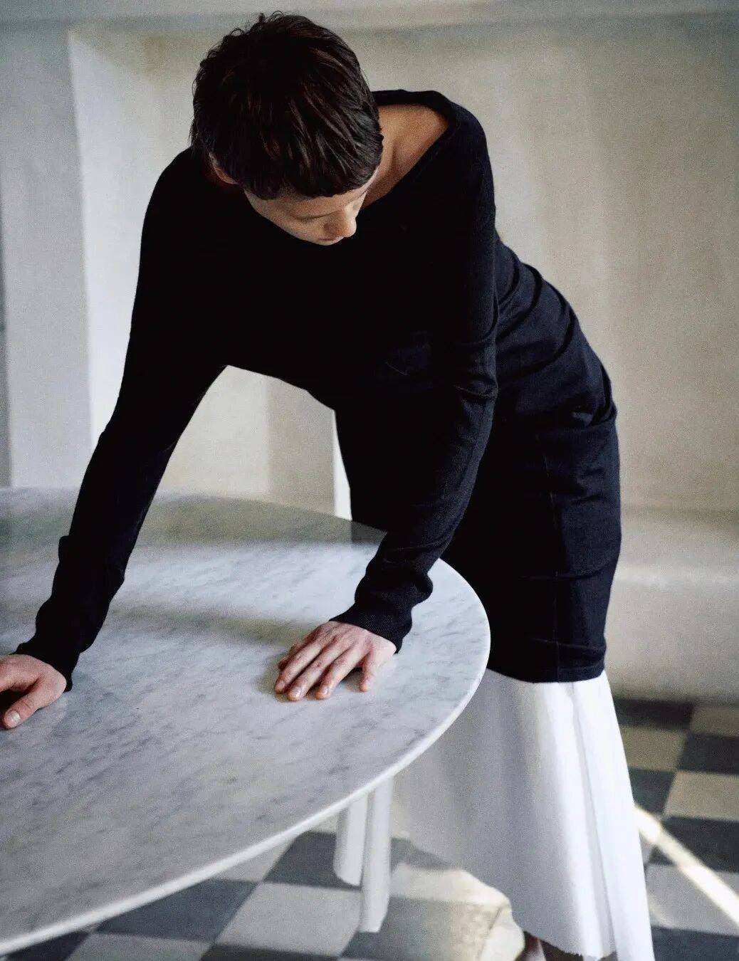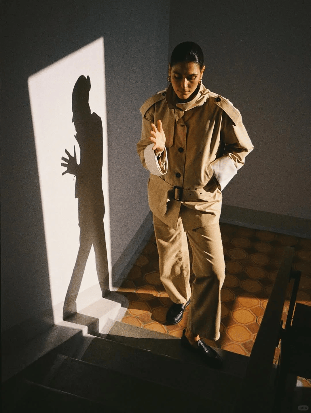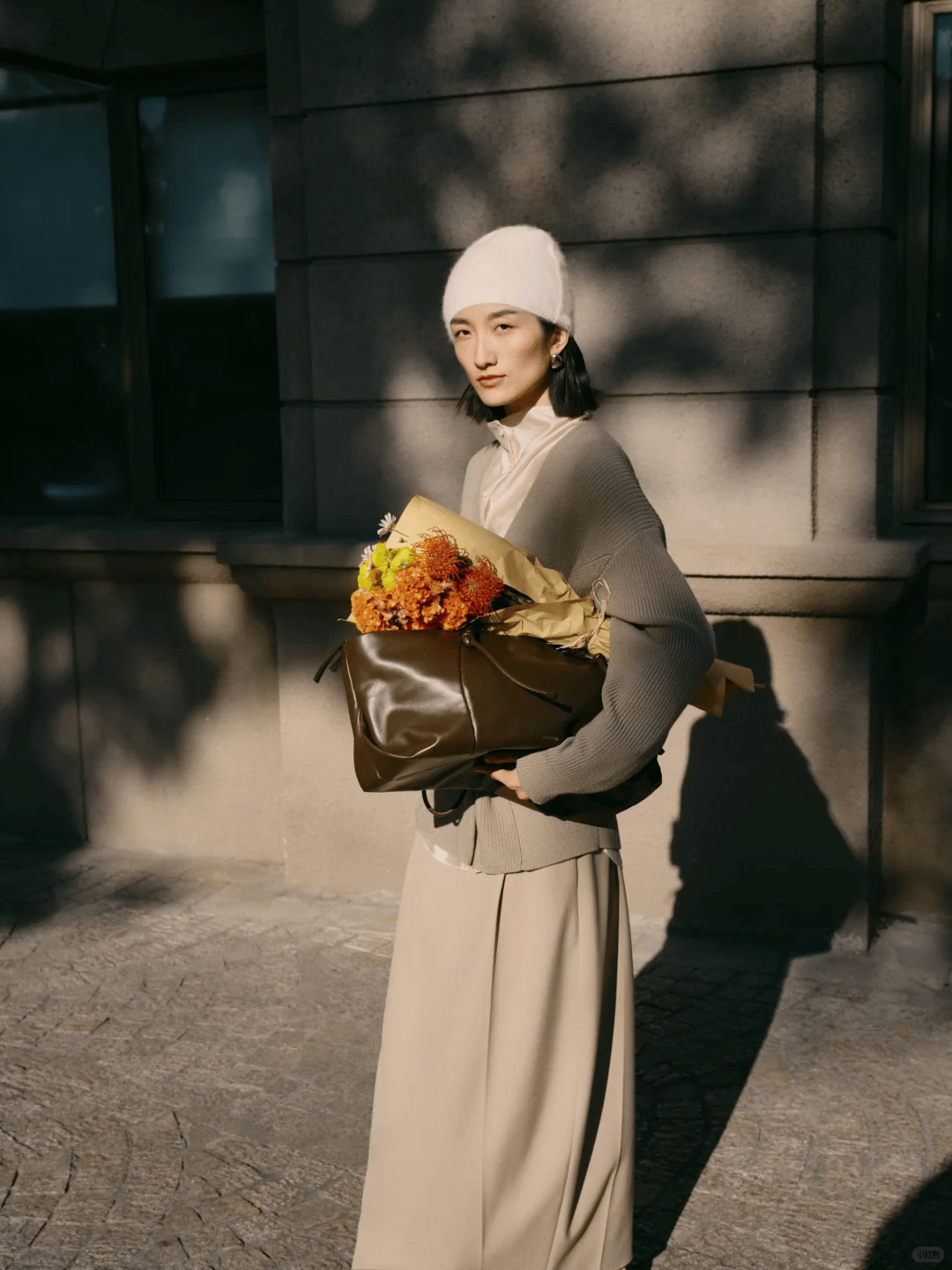 技巧:款式的留白也是设计和廓形的留白,选取精华耀眼的某一件单品,其余用没有存在感的款式搭配。不贪多,不追逐华丽璀璨,在朴素平实中添加别致点缀。