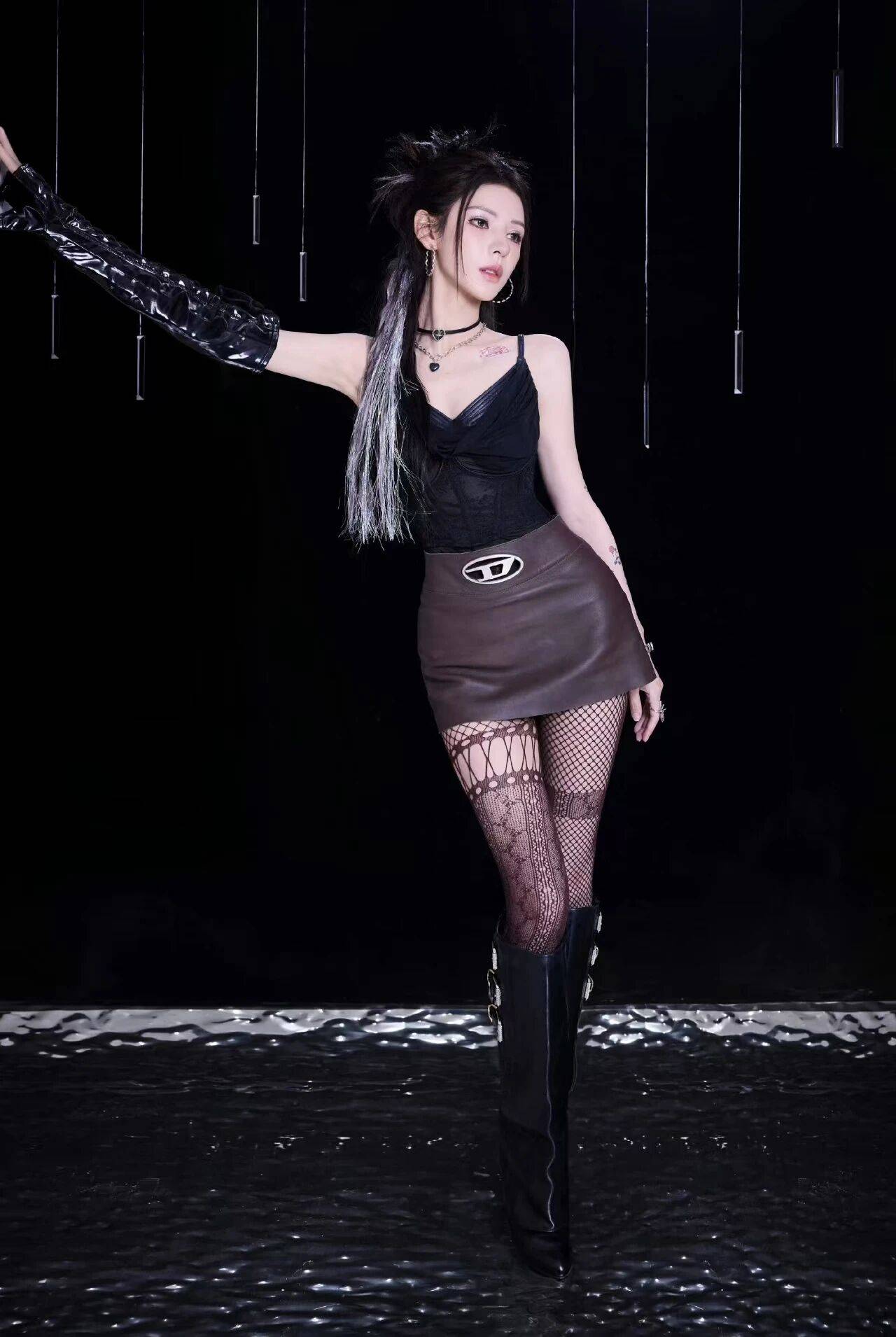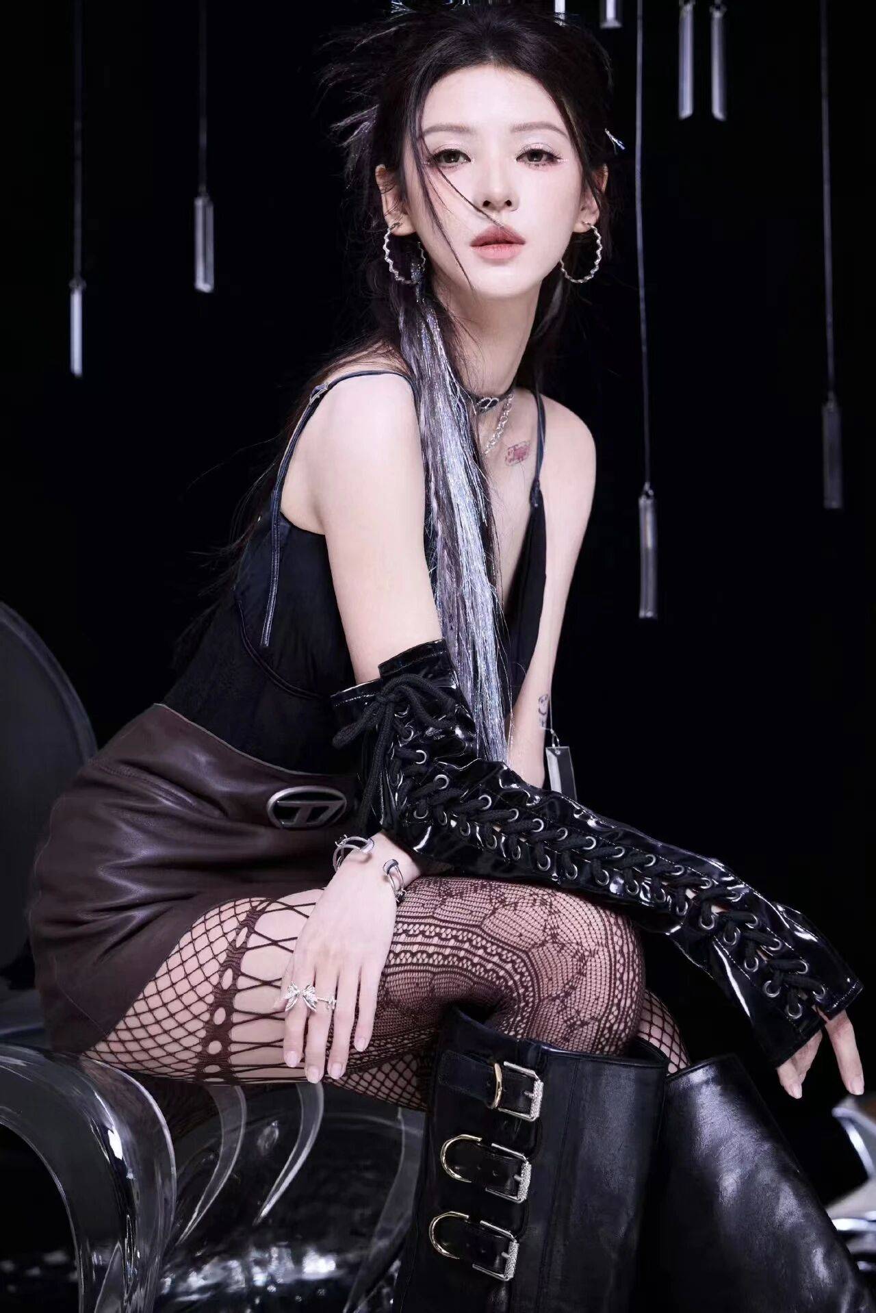 张予曦,网袜长靴的黑色穿搭魅力