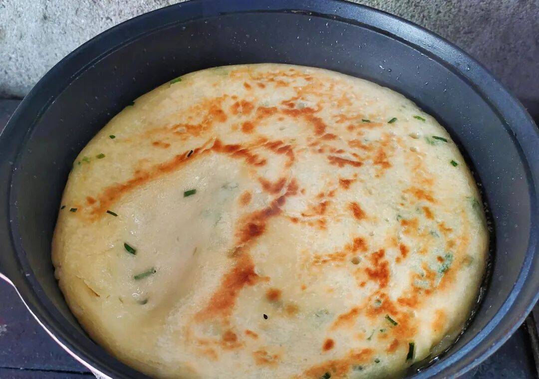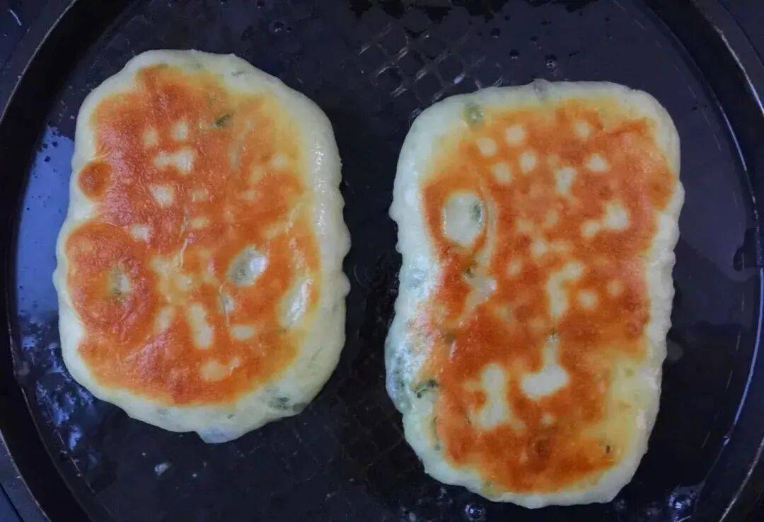 13. 出锅:另一面烙至金黄,轻轻压下饼会很快回弹即可出锅。