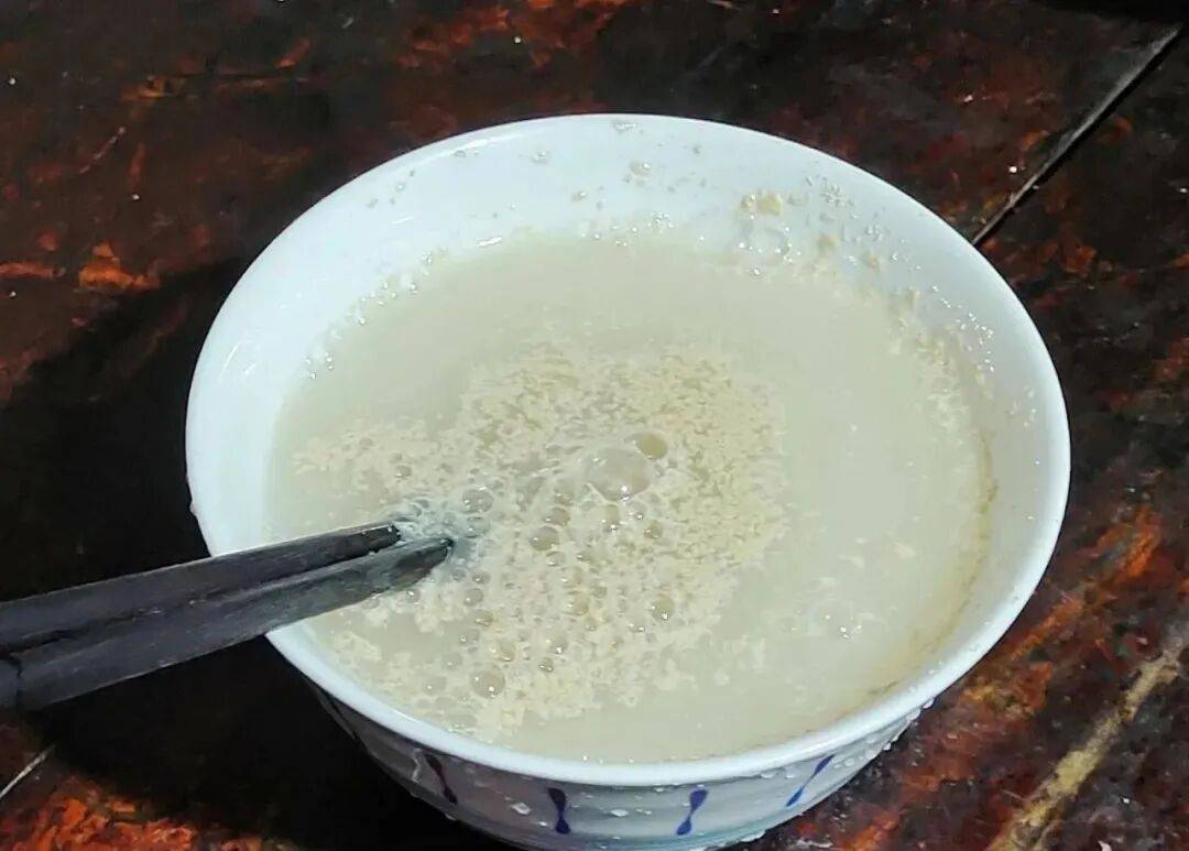 1. 准备酵母水:温水和酵母混合均匀,用筷子搅拌,放置几分钟化开酵母。
