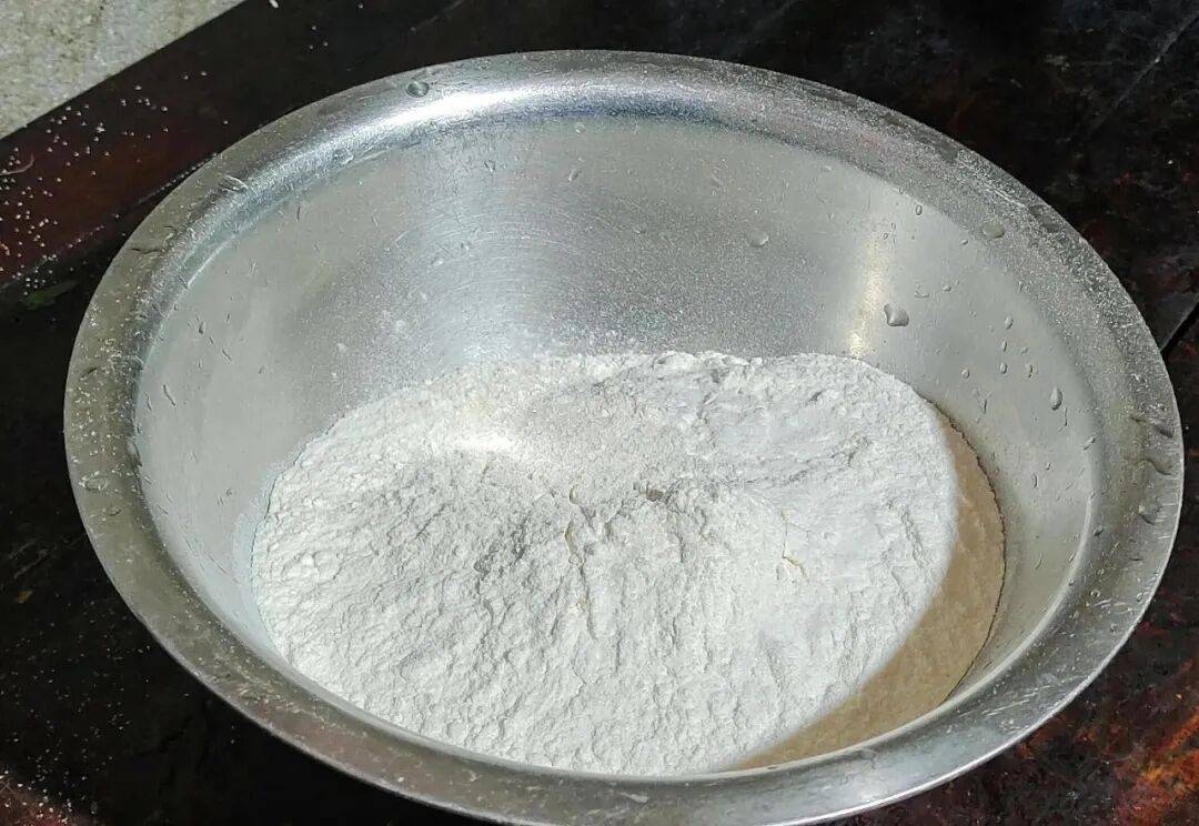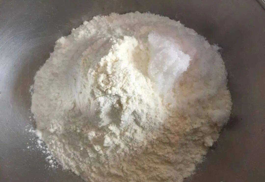 2. 混合面粉和糖:大碗中面粉和白糖搅拌均匀。