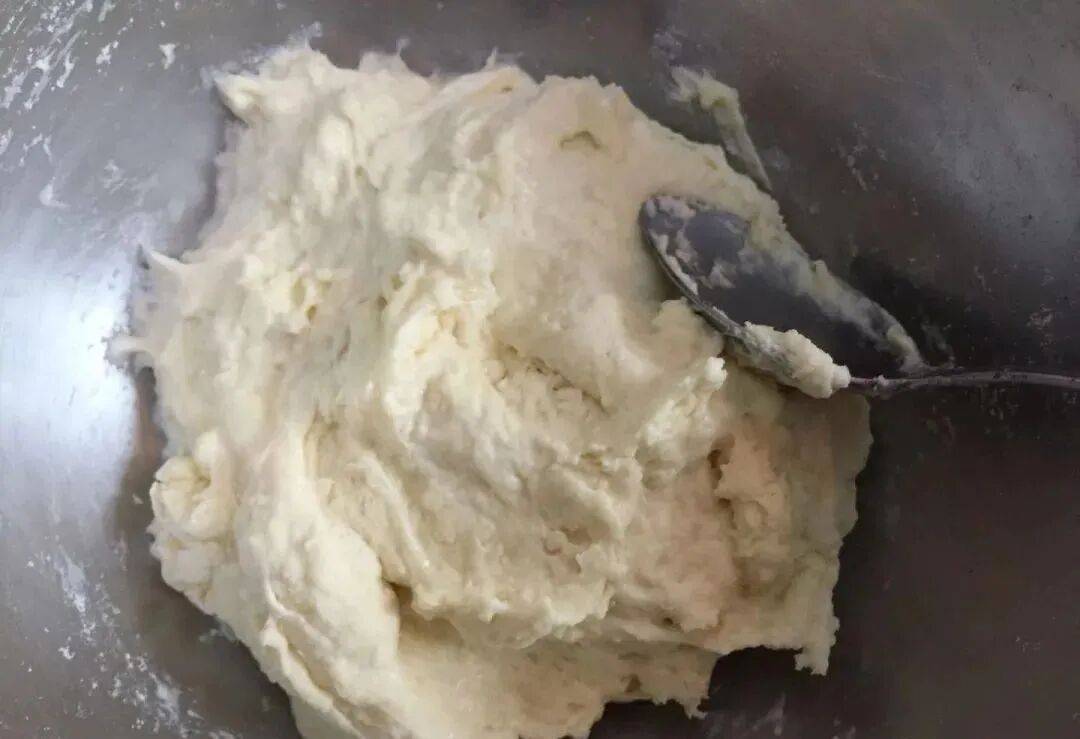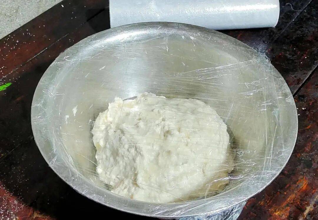 5. 二次揉面:松弛后用汤匙揉成细腻面团,温暖处密封基础发酵。