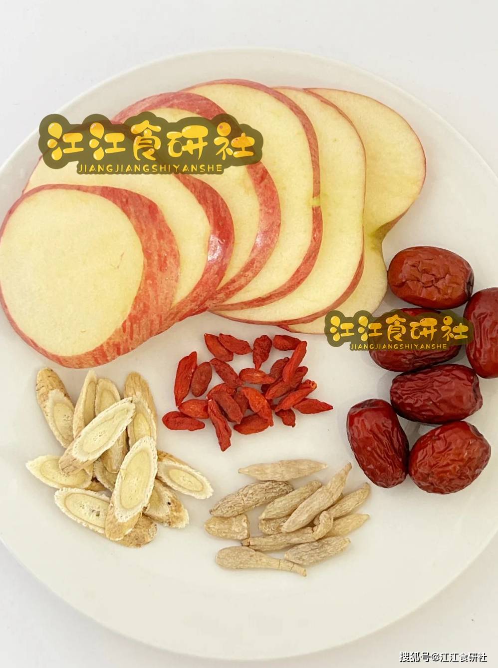 这是关键,放多了有药味,放少了没感觉。我的经验:一个苹果,配5-6片薄黄芪片就够了。就是普通药店里买的那种饮片。千万别放一把。红枣一定要去核,不然也容易燥。