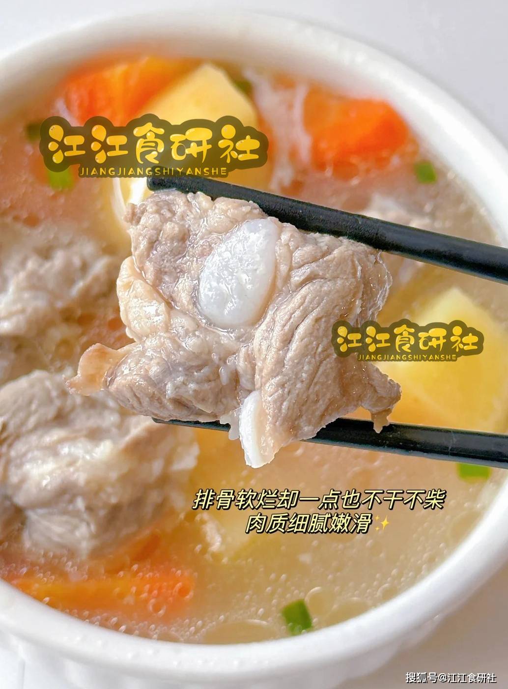 排骨酥烂,山药粉糯,苹果块半透明,入口即化。