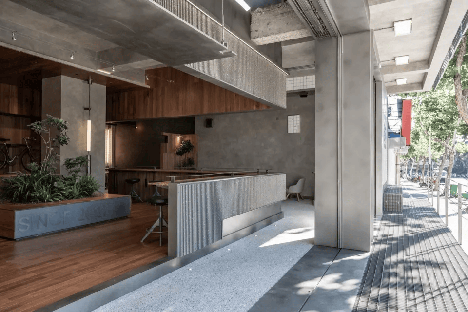 或者设计打造的南京马伍旺 3BRO STORE,集咖啡、茶包与潮流周边于一体,成为城市新聚点。设计通过扩宽门洞、开放吧台,加强室内外连接,提升互动体验。为优化空间动线,内部设置半围合盒状结构,整合收银、出餐与部分客座区,避免布局空洞无序。二楼采用可灵活组合的家具,适应多种使用场景。整体空间注重开放性与功能性结合,营造出轻松舒适的都市社交氛围,让人们在享受美食的同时,也能尽情交流互动。