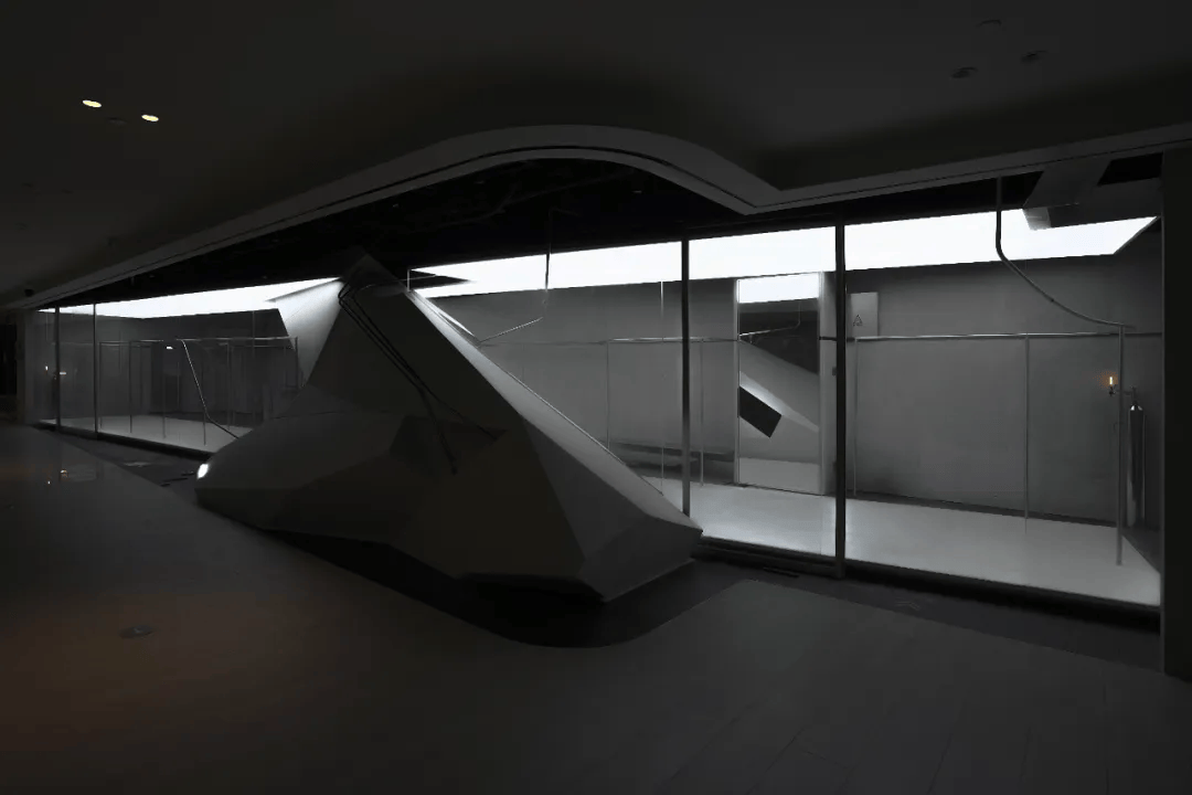 项目位于广州汇美国际服装城,是一个集展示、表演与传播于一体的零售空间。设计通过几何体块、线性杆件与光影长廊构建出三重系统,使空间超越传统销售场景,转化为一个“折叠舞台”。核心异形几何构筑物如残片般嵌入空间,集成音响与储藏功能,同时划分场域。斜向布局的长廊成为走秀舞台与社交传播背景,不锈钢杆件则形成漂浮衣物的展示秩序。材质与灯光营造冷峻氛围,呈现出极具未来感的服装零售新范式。