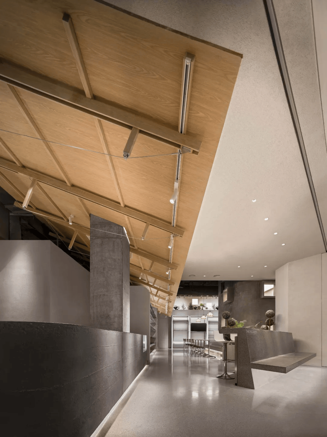 多么工作室改造设计的 MOMO ERA 服饰店,以“屋子”隐喻构建了一个亲切、内敛的购物空间。立面采用木瓦屋顶打造温润门廊,内部空间围绕中央“内院”展开,通过弧形墙面、嵌入壁龛、斜坡小屋式体块等设计,营造出柔和而细腻的动线体验。材料使用上强调旧材新用与手工质感,老榆木、莱姆石、手工灯具等唤起人们的身体记忆,让购物行为与空间情绪深度联结,成为都市中一处带有日常温度的庇护所。