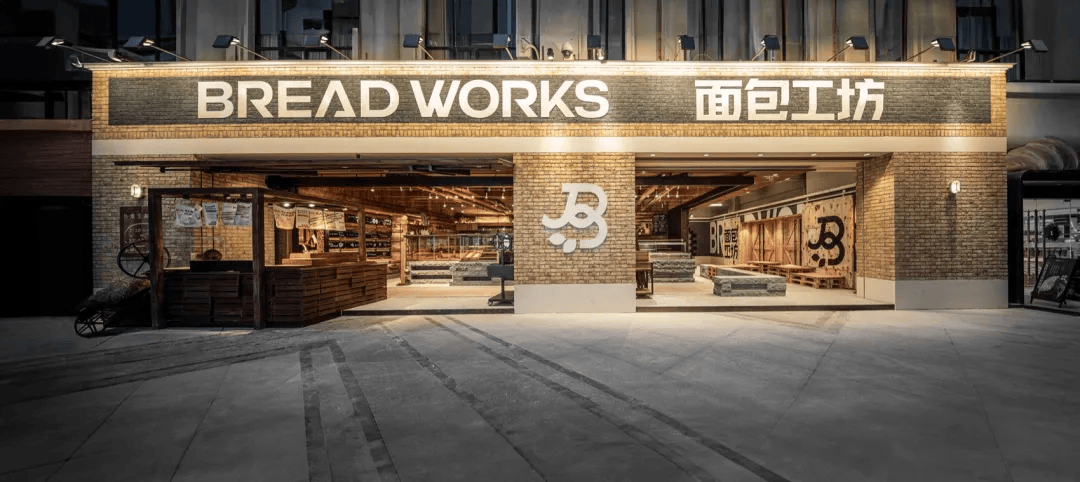或者设计打造的“面包工坊”以温暖自然的木材与石材为主材,营造出如面包出炉般的治愈氛围。空间中最具标志性的设计是一座大型壁炉造型的排烟罩,强化了现烤面包的现场感与参与感,让顾客仿佛置身于面包诞生的瞬间,感受热气与香气交织的幸福体验。