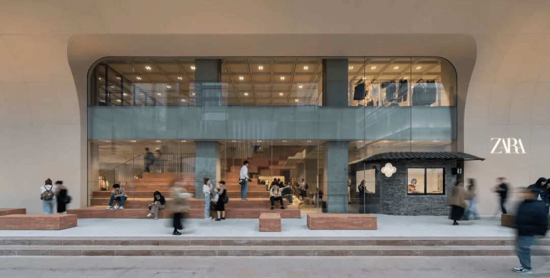 AIM 恺慕建筑设计打造的 ZARA 南京新街口旗舰店,作为品牌全新亚洲旗舰,以沉浸式体验与城市共鸣的空间语言,革新了传统零售模式。设计通过大 尺度雨棚、红砖山形楼梯与通高中庭构建开放场域,模糊商业、公共与文化边界,塑造面向未来的城市锚点。内部材质对比鲜明,融合混凝土、木材与金属,营造出既冷静又具未来感的氛围。ZARA Salon 与潮流自拍舱等功能设置,丰富了顾客互动与数字体验,树立了新一代零售设计典范。
