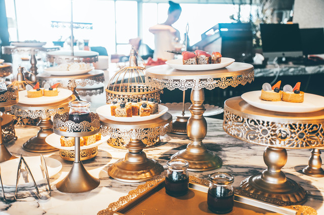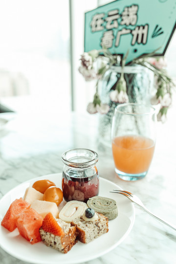 大堂吧自然不会空有沙发与景观,除了早7:00——10:00的免费自助早餐外,每天 11:00——22:00在28F的大堂吧还有不间断的免费自助上下午茶供应,报上房号即可享用。这也是美豪系列酒店的“传统保留项目”,只是各家酒店提供的上下午茶种类都不同。广州雅致应该是我住过的美豪系列酒店里,种类最丰富、出品最精致的一家没有之一;绝对对得起广州这个美食之都的定位了。