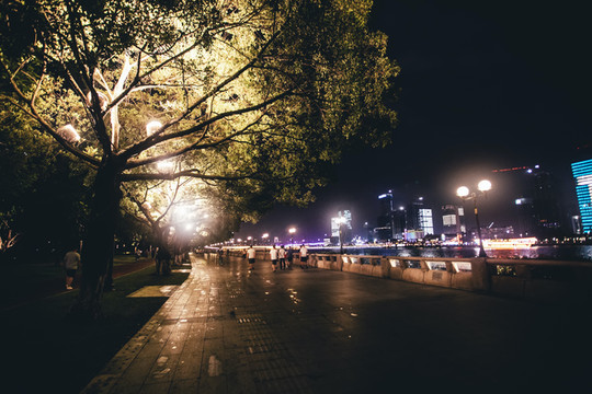 过了上班高峰沿河缓缓步行,连空气都变得文艺起来,恍惚间还能看到广州这座发达都市慢节奏的一面。偶尔能路遇岭南旧时遗存下来的家祠,虽然大门紧闭,好奇地往里面望一眼,豪门大宅的幽深神秘也呼之欲出。
