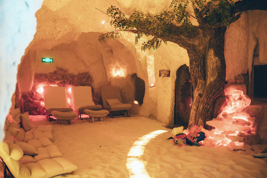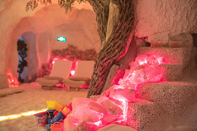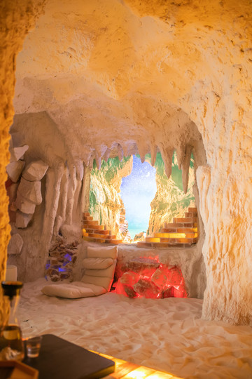 我们选择的是德国古法的盐雾SPA,酒店特别打造了一间别具特色的盐洞,很有自然洞穴的原始feel。确实,在德国南部与奥地利西北部的阿尔卑斯地区有许多盐矿,那里的产盐还被做成工艺品,成了游客们购买伴手礼的首选。而这里采用的就是这种阿尔卑斯山的高海拔天然矿盐,营造天然岩洞、盐沙、盐雾空间。以科学疗养的理念治愈身心,还具有帮助慢症康复、消炎杀菌、提高免疫力的功效。
