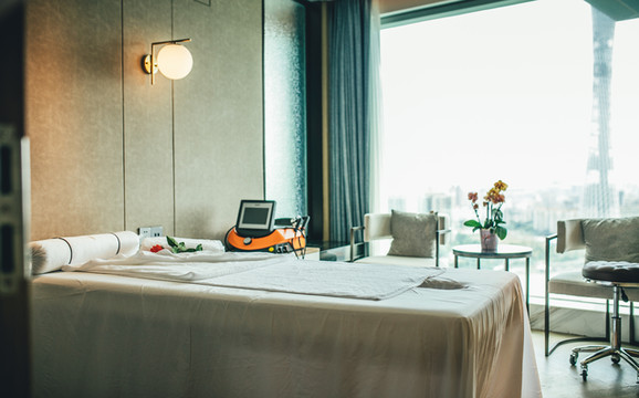 因为在28层,传统SPA小包间的view也相当不错。一边在这里放松体验SPA,一边欣赏窗外的景色,我想享受的是身心的双倍疗愈吧!