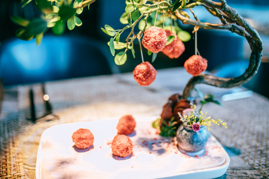 豉油鸡、卤味拼盘,清炒芥蓝、广式靓汤都彰显着最纯正的粤菜基因,靠谱的出品让粤菜爱好者大快朵颐之时,精美的摆盘也让粤菜从市井之间更提升了一个level。还有传统粤菜之外的创意料理,你能猜得到那颗超逼真的荔枝树实际是什么吗?居然是虾球!不吃还真的不知道,外脆里Q层次鲜明,又自带虾仁的鲜美。