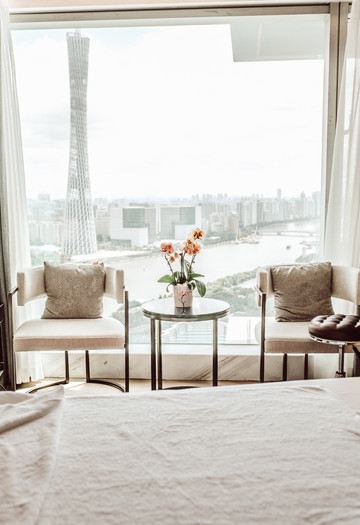 珠江的夜景总是让人百看不厌,原来小蛮腰除了七彩会变幻各种色彩,原来小蛮腰到23:00准时熄灯;痴迷于眼前夜景的我也是在客房的窗边呆坐了两晚,才知道这样对于游客来说的“冷知识”。当然,酒店的给人的惊喜不止于此,管家送来了“迟到”的下午茶,鸟笼式的盛器与精致可口的小西点实在无法招架,让人瞬间忘了节食减重的事情。
