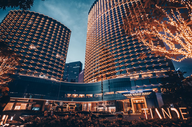 CBD的夜景总能让人领略什么是城市的极致繁华,珠江新城的夜景自然也不能错过。夜晚的广州雅致酒店与白天也截然不同,门口流动的喷泉更给这璀璨夺目的夜晚添了一丝灵动与柔情。从航拍图传上看,夜晚的天德广场傲立路口,成了周边最夺目的一颗星;张开的风帆一旦被夜点亮,更宜远航。