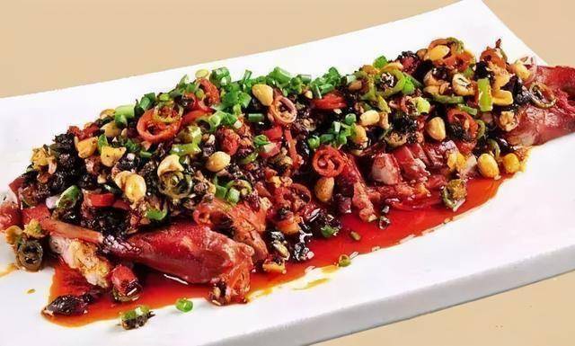 食材:鲜鸭掌500克,川东水豆豉60克,青红椒丁40克,小米椒圈10克。美极鲜酱油、鸡精、味精、白糖、鲜露、泡椒油、花椒油、色拉油各适量、白卤水1锅。