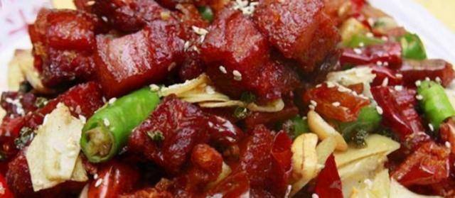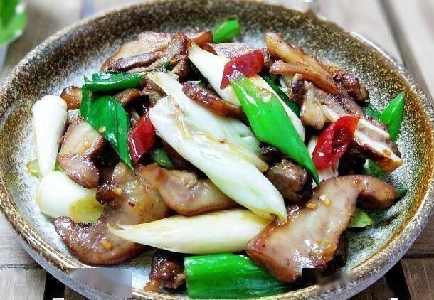 制作步骤:1、猪头肉切成片,大葱去掉外皮后洗干净,然后斜切成稍微大点的段,泡椒剁碎,干辣椒切成丝。