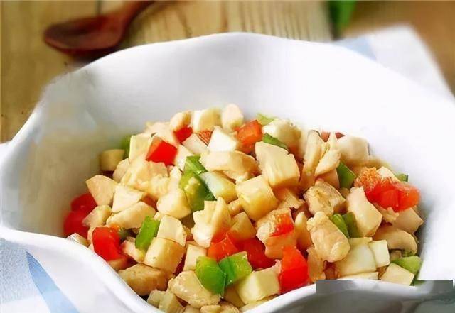 烹制方法:1、将鸡胸肉切成小粒,加盐、胡椒粉、料酒、蛋清拌匀腌制5分钟,茭白切片备用;