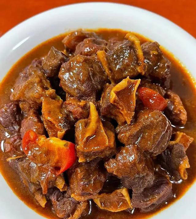 6. 回锅牛肉:将之前炒好的牛肉倒入锅中,快速翻炒,确保牛肉均匀裹上番茄汁,煮约3-5分钟,让牛肉吸收番茄的鲜味。