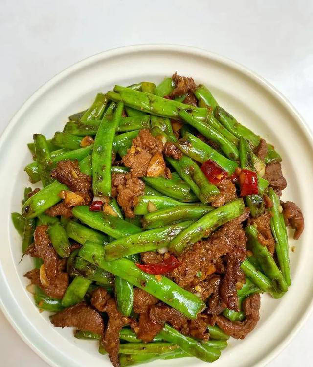 食材准备:四季豆、牛肉、蒜末、小米辣、黑胡椒粉。