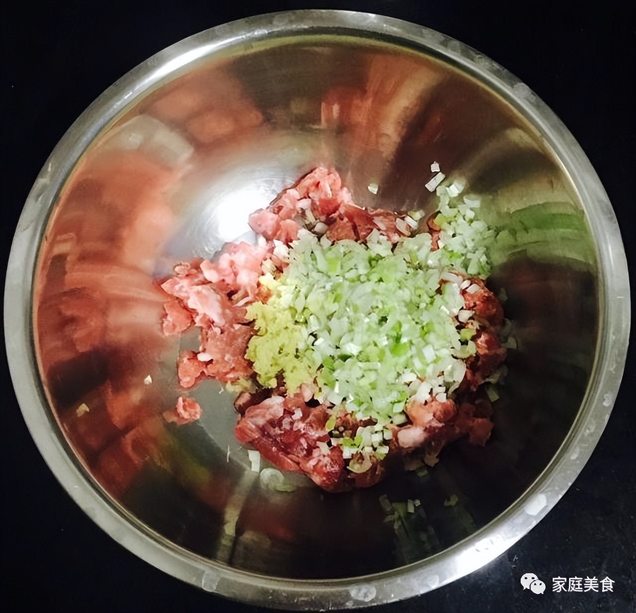 肉馅加盐,葱、姜末,料酒,蚝油,十三香,盐,鸡精搅拌均匀腌制入味