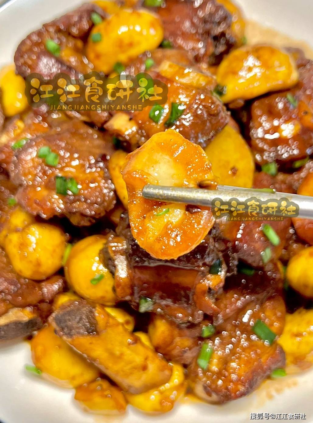 三、板栗烧排骨:家常菜里的秋日风味   板栗与排骨同烧,吸收了肉汁的板栗变得咸香软糯,解了排骨的油腻,添了秋日的香甜,堪称绝配。