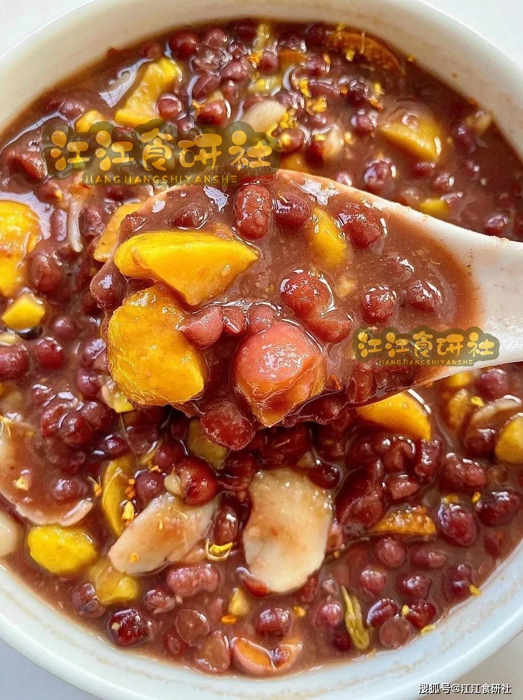 二、板栗百合红豆羹:润燥安神的甜蜜滋味   这款甜羹口感丰富,板栗的香、百合的糯、红豆的沙完美融合,既能当早餐,也可作宵夜,暖心又暖胃。