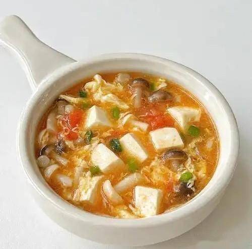 食材:嫩豆腐1块、鸡蛋4个、番茄酱1勺、葱1根、蒜3瓣   做法:   1. 嫩豆腐切成2厘米见方的小块(动作轻一点,避免碎掉),放入大碗中,打入4个鸡蛋,用筷子轻轻翻拌,让每块豆腐都裹上蛋液。   2. 调碗汁:1勺生抽、1勺蚝油、1勺番茄酱、1勺水淀粉,加少许清水搅匀,酸甜口孩子超爱。   3. 热锅倒油,油热后下葱花、蒜末炒香,倒入裹好蛋液的豆腐,中小火慢煎,煎至蛋液定型、表面金黄,用铲子轻轻炒散(不要太用力,避免豆腐碎)。   4. 淋入调好的碗汁,大火翻炒至汤汁浓稠,裹在豆腐上   三、番茄菌菇豆腐汤